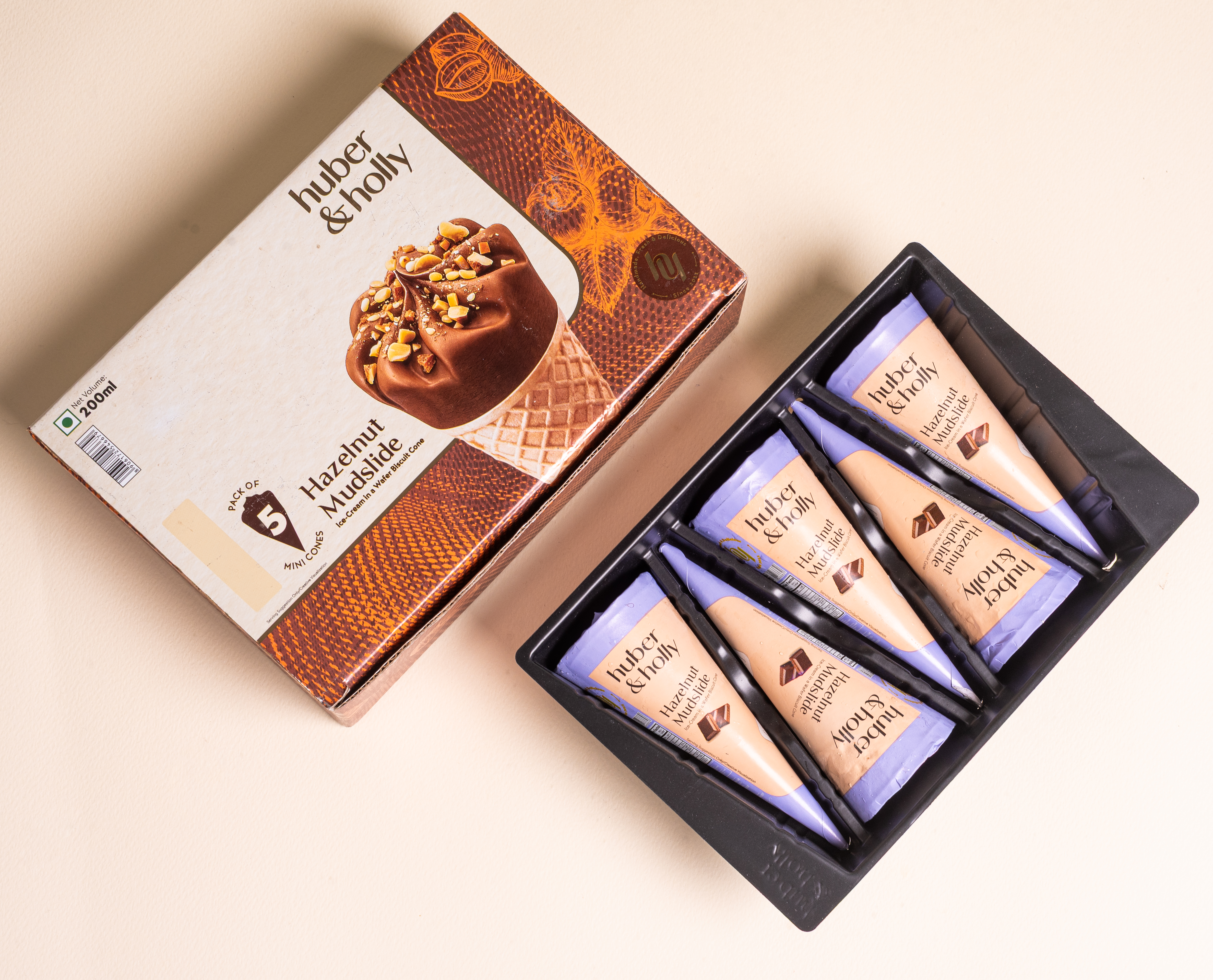 Rich hazelnut ice cream in a crunchy waffle cone