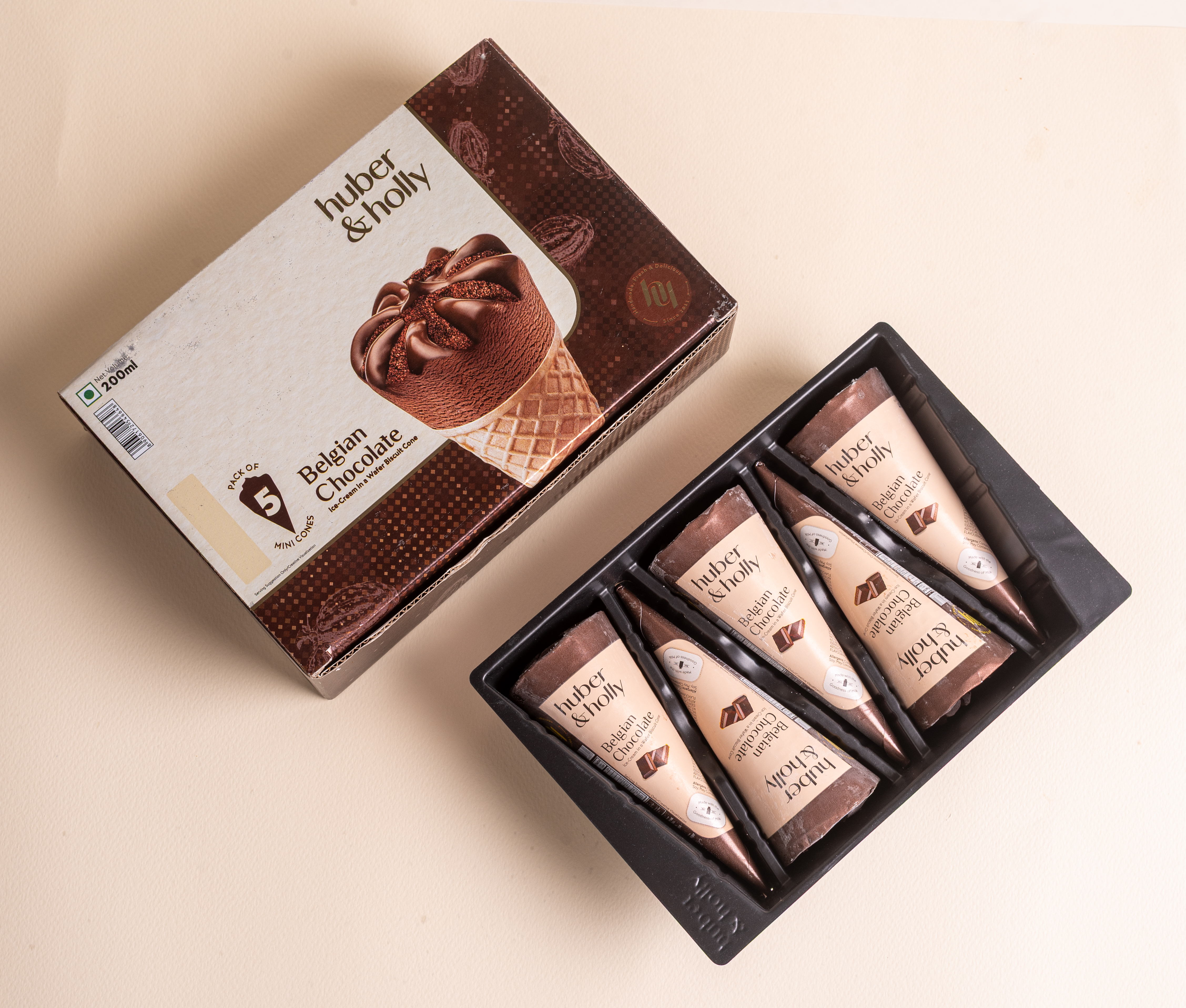 Belgian chocolate ice cream in a crunchy waffle cone